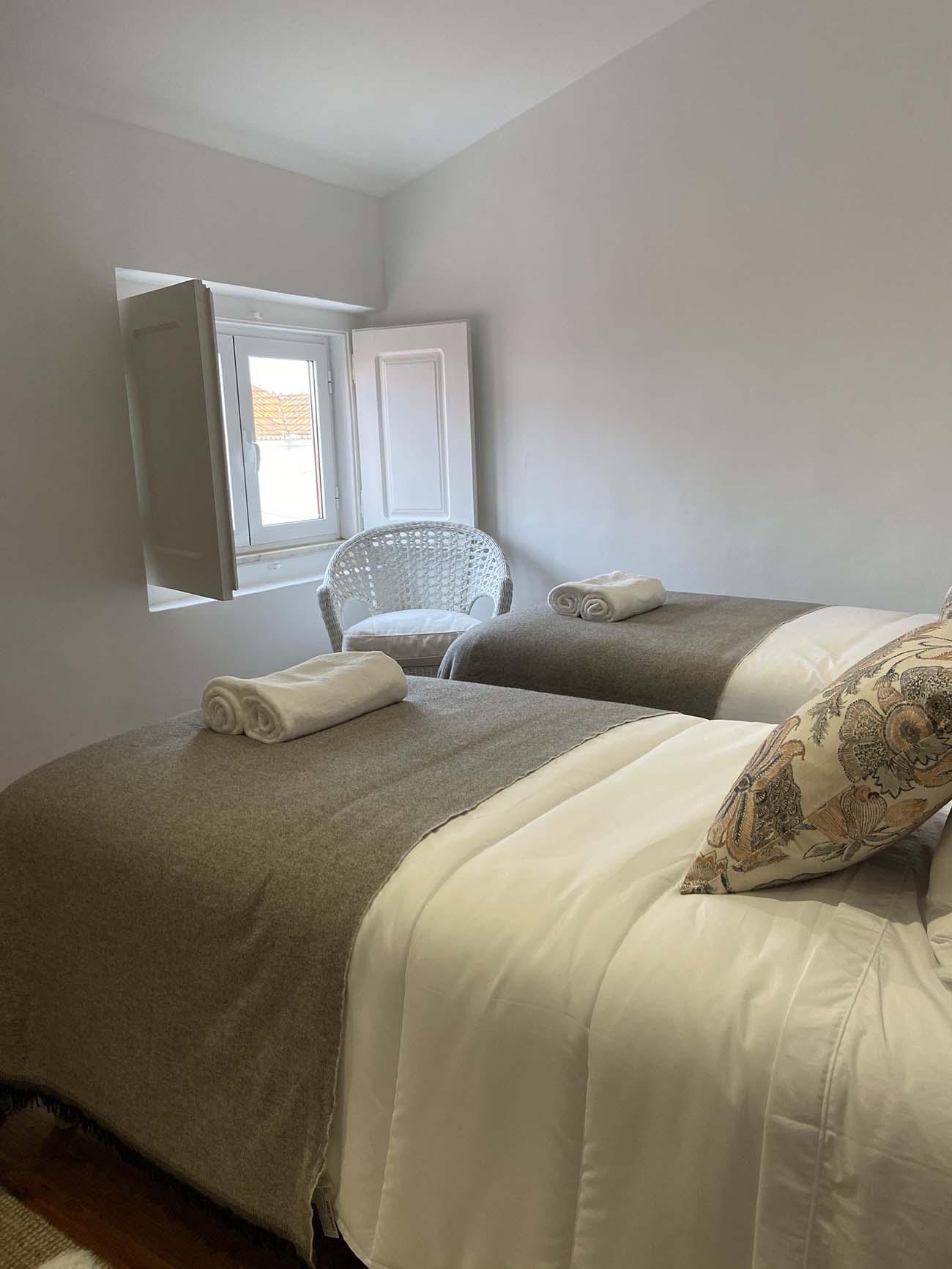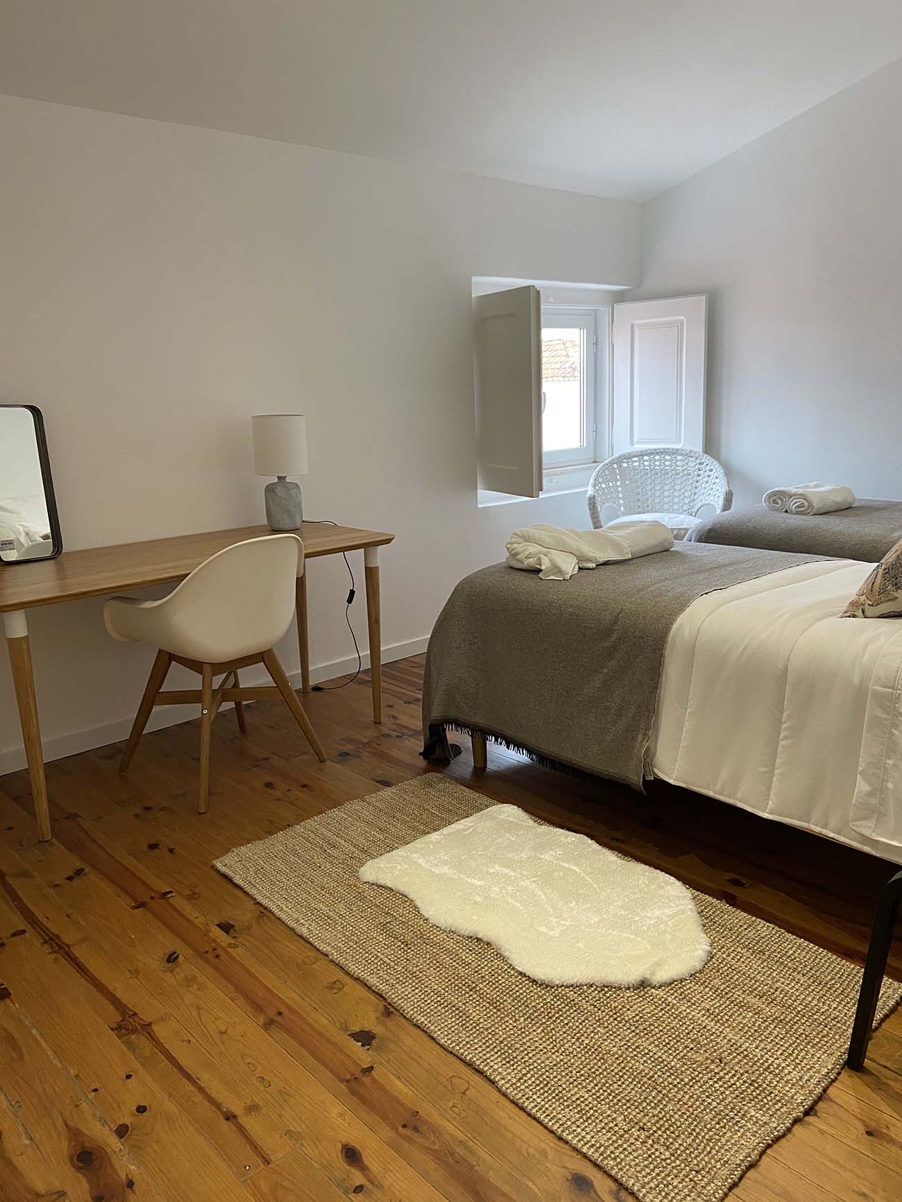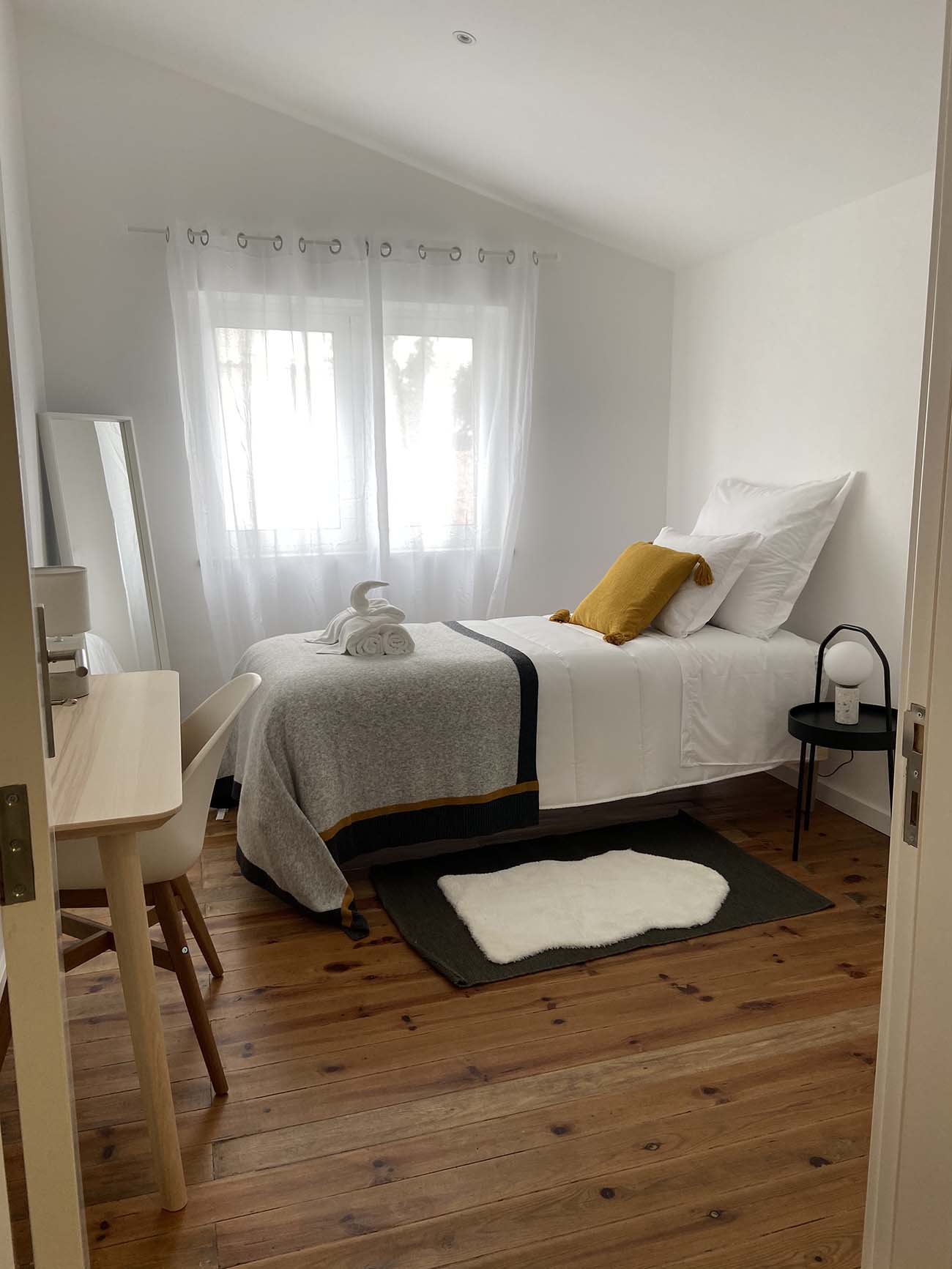 Three-storey house, renovated in 2020, with all modern comforts. Outdoor patio and terrace with access from the living room. A cosy atmosphere where guests feel at home. The 6 bedrooms are distributed across 3 floors. On the ground floor, 1 double bedroom; on the 1st floor, 2 double bedrooms and 1 single bedroom; on the 2nd floor, one twin bedroom and one single bedroom. There is a shared bathroom on each floor. The bathrooms on the 1st and 2nd floors are equipped with 2 showers and 2 washbasins each. A laundry room is accessible from the patio. Internet access throughout the house. Air conditioning in all bedrooms and common areas.